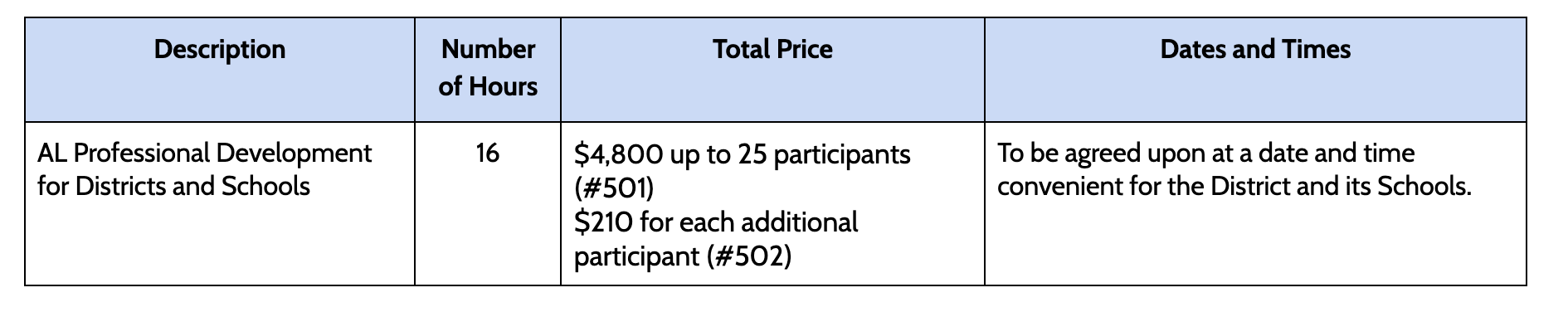 AL Professional Development Cost: